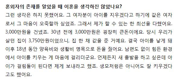 혼외자 사건을 겪고도 이혼을 하지 않으셨던 이유를 한번 들어볼게요.