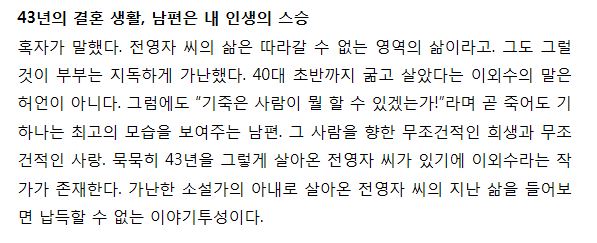 그럼에도 불구하고 자신은 존경하는 사람이 남편인 이외수라고 표현 하시는데..