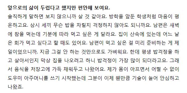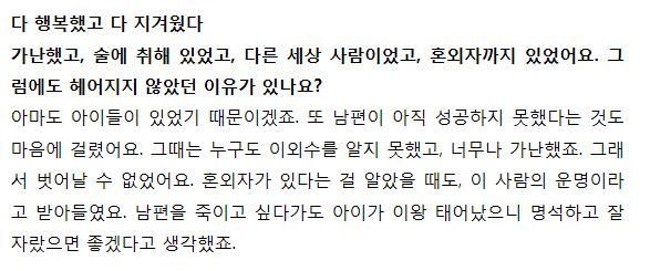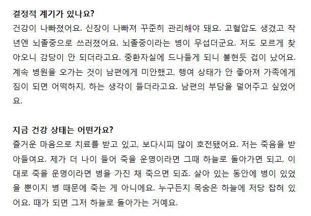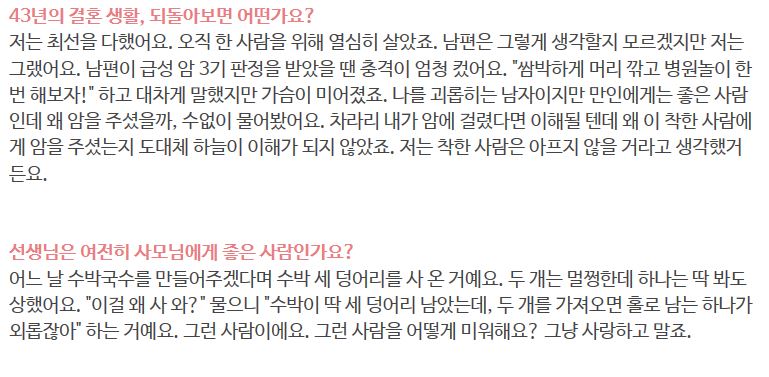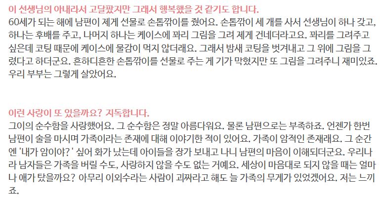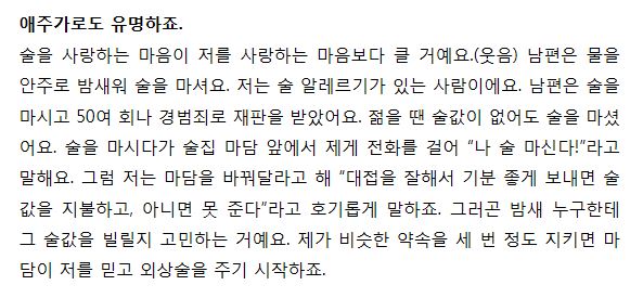 정말 여자가 봐도 대단한 여자인 전영자씨의 인터뷰 내용이에요.