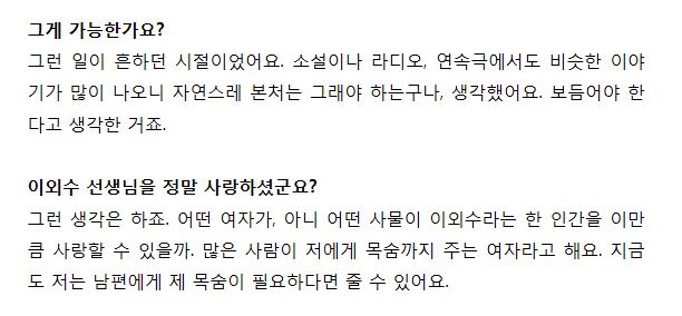 그럼에도 불구하고 자신은 존경하는 사람이 남편인 이외수라고 표현 하시는데..