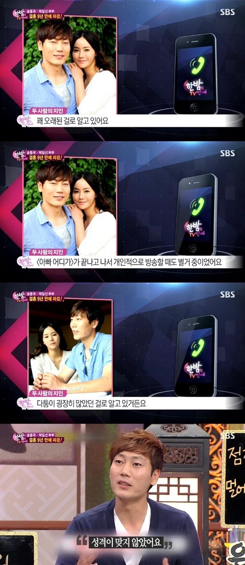 송종국 박잎선의 이혼 소식이 전해졌을 당시인 10월 7일 방송된 SBS '한밤의 TV 연예'에서는 축구선수 송종국과 배우 박잎선의 파경 소식을 전했다. 송종국 박잎선은 결혼 9년 만에 합의 이혼을 했다.