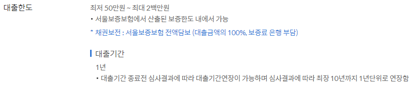 이 한도는 개인별 차등 적용될 수 있는데, 실제 한도는 서울보증보험에서 산출된 보증한도 내에서 신청할 수 있습니다.