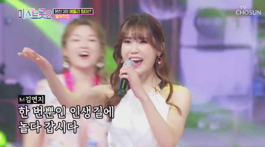 본선 3차전 / 팀 메들리에서는 마리아, 주미, 황우림, 트윈 걸스와 함께 딸 부잣집을 결성해 십 년은 젊어 보여요를 시작으로 여고시절’, ‘신 사랑고개’, ‘살다 보면을 메들리로 부르며 흥겨우면서도 감동적인 무대를 완성해 주었습니다.