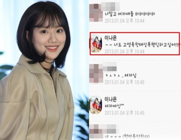 또 최근 온라인상에는 이나은의 과거 발언이라는 SNS 댓글이 떠돌았다. 화면엔 나은이 친구에게 '너도 고영욱한테 성XX 당하고 싶어?'라고 말하는 댓글이 담겨있었다. 그룹 룰라 출신 고영욱은 미성년자 성폭력 혐의로 실형 및 전자발찌 선고를 받고 만기 출소했다.