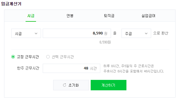 네이버 임금계산기를 통해 시급과 연봉, 퇴직금, 실업급여 등을 계산할 수 있습니다. 조금식 오차가 있을 수 있으니 참고용으로만 사용하시기 바랍니다.
