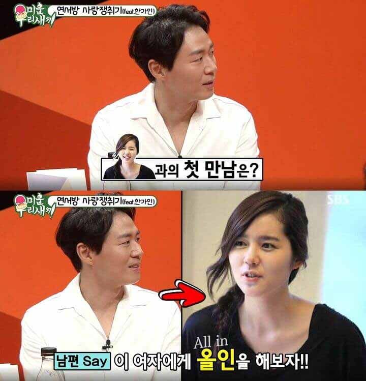 처음 보자마자 한가인에게 반한 연정훈... 연정훈은 한가인에게 올인을 해보자 ㅋㅋㅋ라고 생각했다고 합니다.