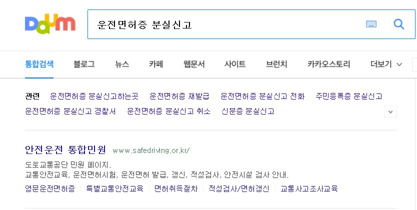 운전면허증 분실신고를 하는 방법은 곧 재발급이라고 말씀드렸습니다. 재발급은 총 3가지 방법으로 할 수 있는데요. 첫번째로 인터넷 재발급을 하는 방법이 있습니다. 먼저, 포털사이트에서 검색하면 안전운전 통합민원(www.safedriving.or.kr)이라는 사이트가 검색되는데요. 해당 사이트에 접속해 줍니다.