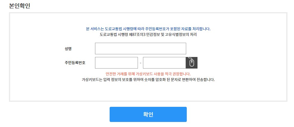 운전면허증 분실신고로 인해 재발급을 하기 위해서는 본인확인을 진행해야 하는데요. 이름과 주민등록번호를 입력한 후 공인인증, 핸드폰인증, 디지털패스, 핀인증 중 하나를 선택해서 본인확인을 합니다.