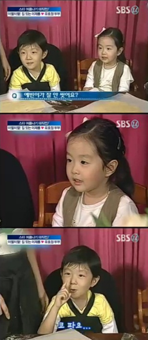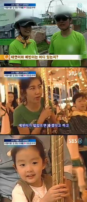 유: "사실 어제(2010년 8월) 아이들이 드라마 이웃집 웬수의 안은정 언니(극중 김은서 역할의 아역배우, 올해 나이 14살)를 꼭 보고 싶다고 해서 촬영장에 데리고 갔다."