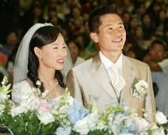 게다가 둘은 종교가 같기 때문에 자연스럽게 가까워집니다. 2000년 부터 교회를 중심으로 3년간 연애를 하다가 2003년 6월 6일 결혼식을 올립니다(서울 용산구 서빙고동 온누리교회).