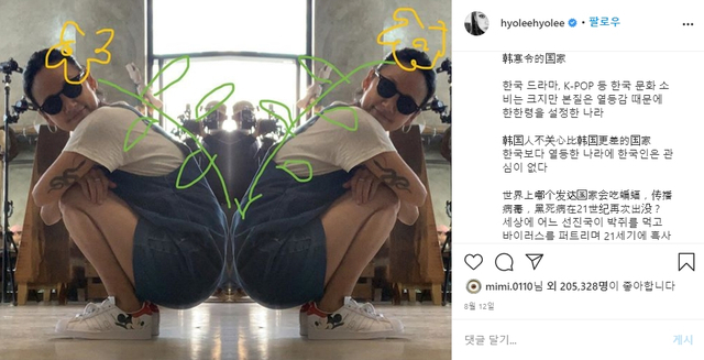이효리 인스타그램에는 부캐 '마오' 언급에 중국 네티즌들의 악플 테러가 이어지고 있다.
