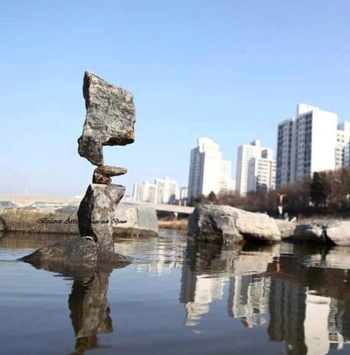 체육학을 전공한 그는 만능 스포츠맨으로 실내 스키장을 운영했을 당시에도 다양한 스포츠를 강습했다고 하는데요. 그러다 2003년 웨이크보드를 타러 갔다 심심풀이로 돌 쌓기를 한 것이 취미가 되었고 이후 중심 잡기 연습에 몰입하면서 특유의 중심잡기 능력과 노력이 더해져 자신만의 영역을 찾아 설치미술가, 세계적인 작가로 거듭날 수 있었습니다.
