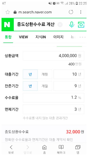 중도상환수수료계산 : 네이버 통합검색