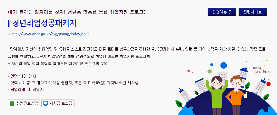 취업성공패키지는 저소득 취업취약계층에 대해 취업지원을 해주는 프로그램입니다. 취업한 경우 성공수당까지 지급하기 때문에 '일석이조' 효과를 볼 수 있습니다. 정말 좋은 프로그램이지만 많은 분들이 모르고 있는데요. 아직 취업을 하지 못했거나 진로를 정하지 못한 분들은 꼭 신청하셔서 좋은 혜택 보시기 바랍니다.