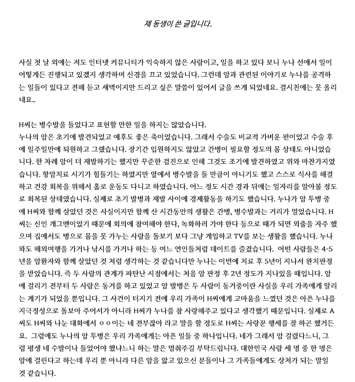 [ 다음은 하준수(하카소)와 안가연의 바람을 이야기하는 네이트 판의 원글 ]