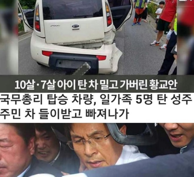 이어 “황교안 총리가 탑승한 차량이 차를 들이받고 조치없이 현장을 떠났다. 차량에는 어린이 3명(10살 2명, 7살)과 부인이 함께 탑승해있었다”고 설명을 하기도 했습니다. 이어 그는 “경찰차가 오길래 비켜주고 뒤에 국무총리 차가 왔다는 말이 들려 확인하기 위해 차를 세웠는데 경찰들이 뛰어와서 무작정 차를 앞으로 밀기 시작했다.