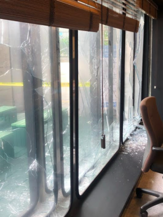 오늘(5일) 오후 3시 40분경 40대로 보이는 남성이 KBS 본관 2층에 위치한 라디오 오픈 스튜디오의 대형 유리창을 둔기로 파손하는 사건이 발생했습니다.
