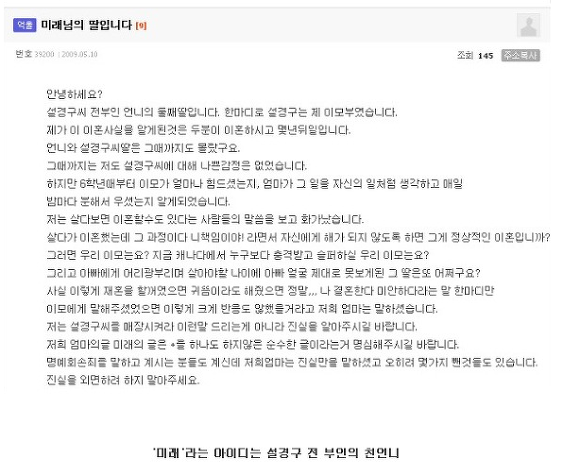 참고로 설경구 처형글을 보면, 몇가지 중요한 사실을 알 수 있습니다(설경구 이혼배경).