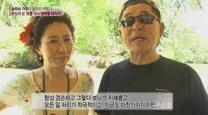 송: "하와이에서 10여 년을 살다가 다시 한국으로 돌아오니 힘든 점이 많았어요. 한국에서는 결혼이란 제도가 '시댁 식구와의 결합'이기도 하잖아요. 결혼한 사람들은 다 아실 거예요. 결혼 후에 시댁 식구들과 스스럼없이 어울리기까지 수많은 시행착오를 거쳐야 한다는 것을..."(탈랜트 송옥순 남편 이종인)