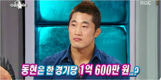 김동현: "현재 내 대전료는 1억원이 넘는다(정확한 금액은 세금포함 1억 6백 7십 5만 2천원). 이길 때만 그렇게 받고 지면 반만 받는다. 이기고 대기실에 가면 바로 수표를 가져온다."(김동현 파이트머니)