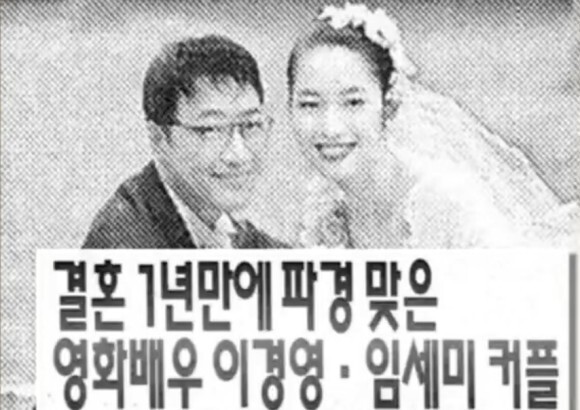 이경영은 1997년 12살 연하의 KBS 슈퍼탤런트 출신 배우 임세미와 결혼했지만 이듬해인 1998년 이혼했습니다.